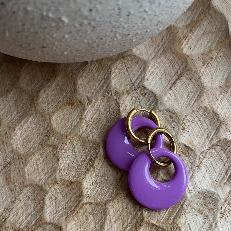 Dit prachtige ronde model, genaamd Zara, is 2 cm lang en afgewerkt met een glanzende laag resin. Het hangt aan een goudkleurige RVS hoop en geeft je outfit een stijlvolle en chique touch. Liever een zilverkleurig ringetje? Laat het gerust weten in de notities bij je bestelling.